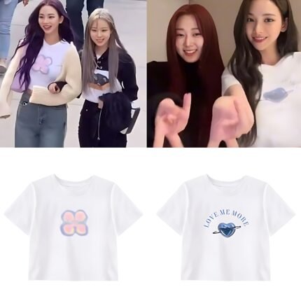 Aespa Livestream Love Me More Flower Cropped T-Shirt