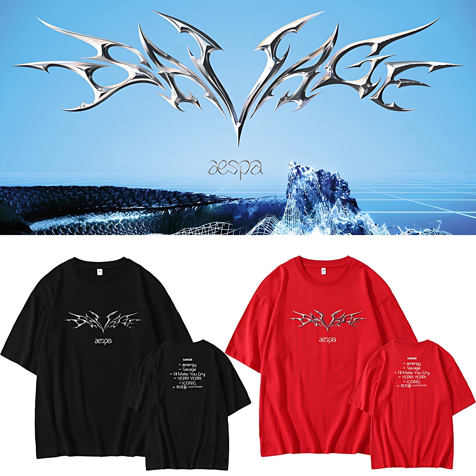Aespa Savage Album T-Shirt! The shirt is 100% cotton. Super comfy and skin-friendly. Match with your bias!