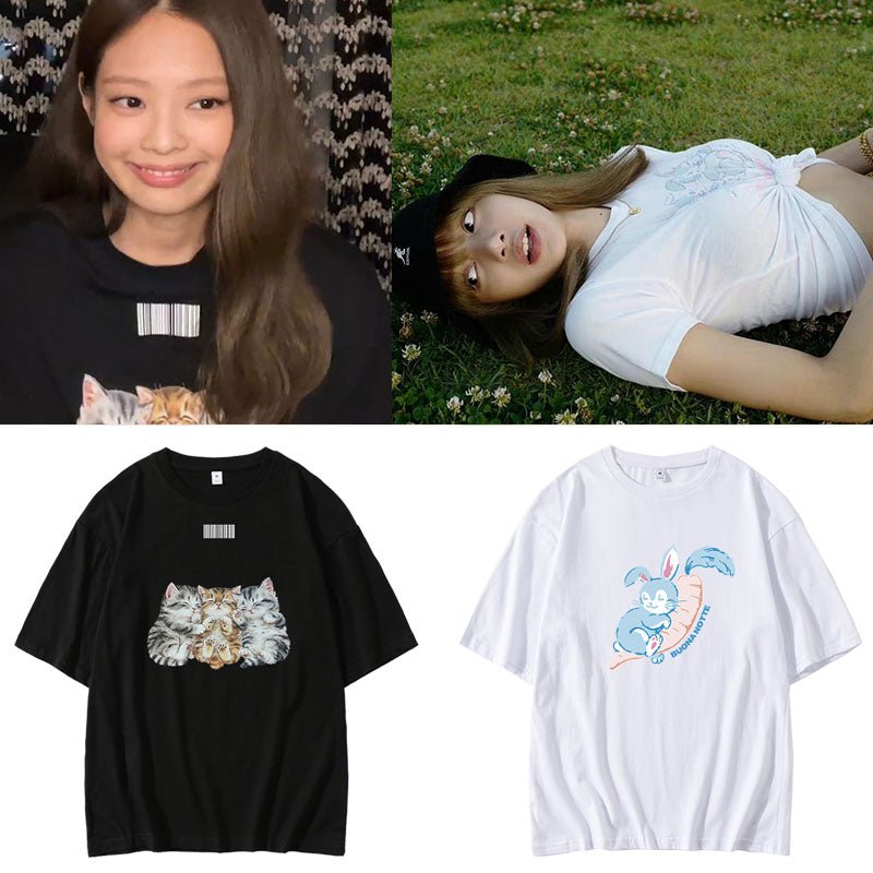 Blackpink Cat Carrot Bunny T-Shirt! The shirt is 100% cotton. Super comfy and skin-friendly. Match with your bias!