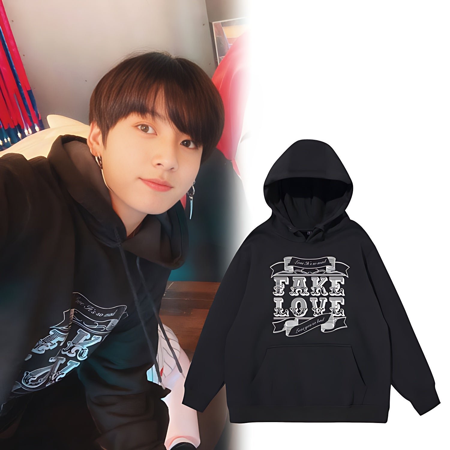 BTS Fake Love Hoodie! The sweatshirt is 100% cotton with a velvet soft interior. Super comfy and skin-friendly. Match with your bias!