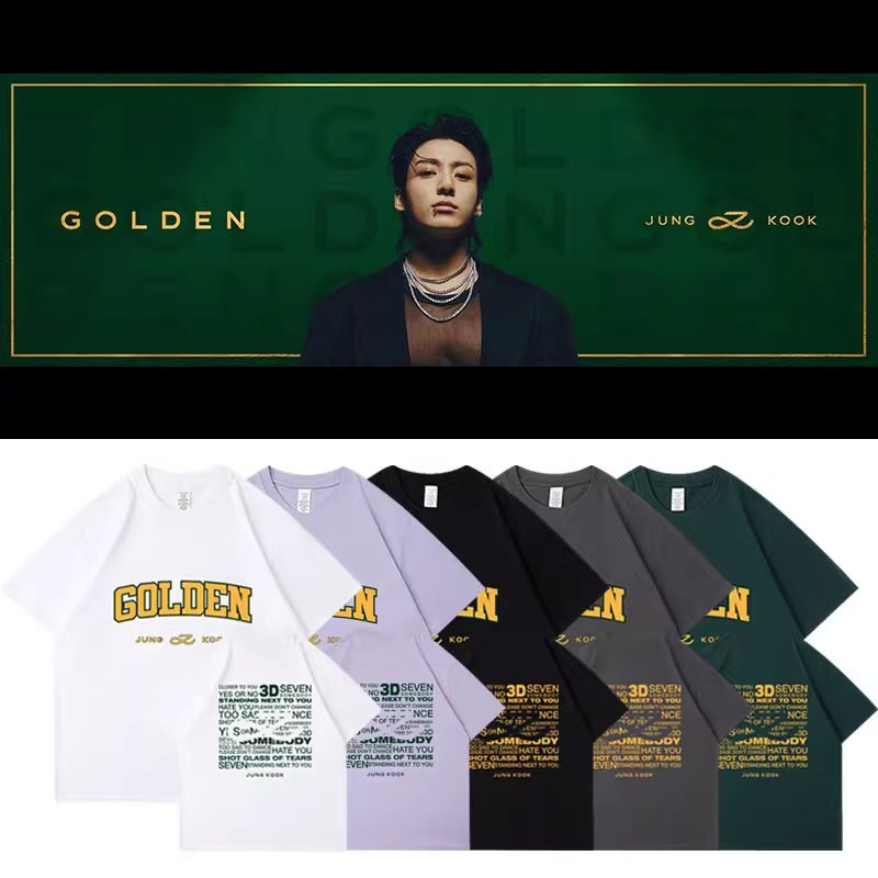 BTS Jungkook Golden T-Shirt! The shirt is 100% cotton. Super comfy and skin-friendly. Match with your bias!
