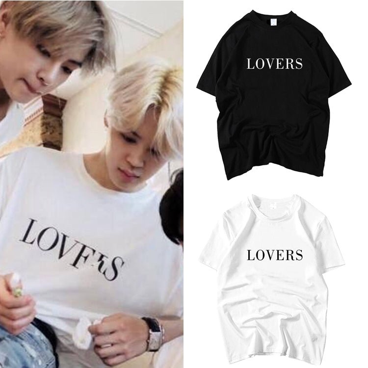 BTS Park Jimin Lovers T-Shirt! The shirt is 100% cotton. Super comfy and skin-friendly. Match with your bias!