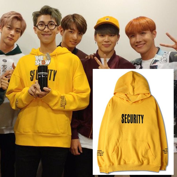 BTS RM Kim Namjoon Security Hoodie Sweatshirt! The sweatshirt is 100% cotton with a velvet soft interior. Super comfy and skin-friendly. Match with your bias!
