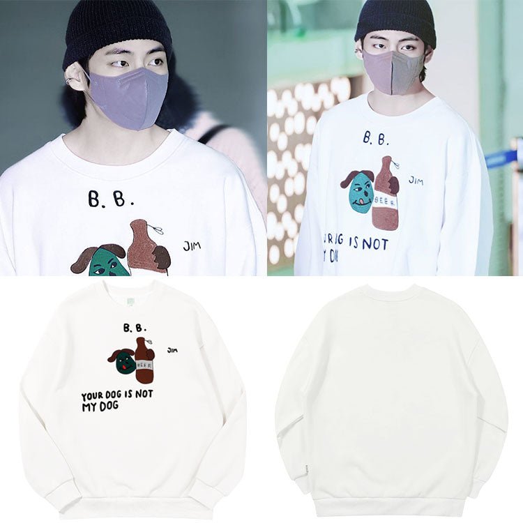 BTS Your Dog Is Not My Dog Crewneck! The sweatshirt is 100% cotton. Super comfy and skin-friendly. Match with your bias!