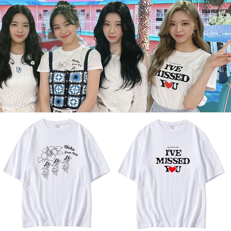 Itzy I’ve Missed You Aloha From Ncy T-Shirt Merchandise! The shirt is 100% cotton. Super comfy and skin-friendly. Match with your bias!