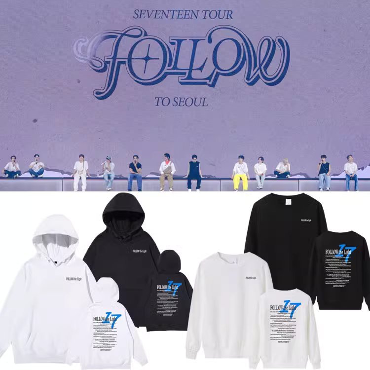 Seventeen Follow To Seoul Tour Crewneck Hoodie! The sweatshirt is 100% cotton with a velvet soft interior. Super comfy and skin-friendly. Match with your bias!