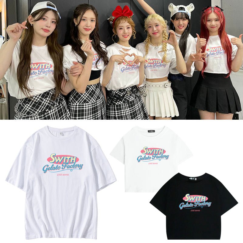 STAYC Swith Gelato Factory Cropped T-Shirt! The sweatshirt is 100% cotton with a velvet soft interior. Super comfy and skin-friendly. Match with your bias!