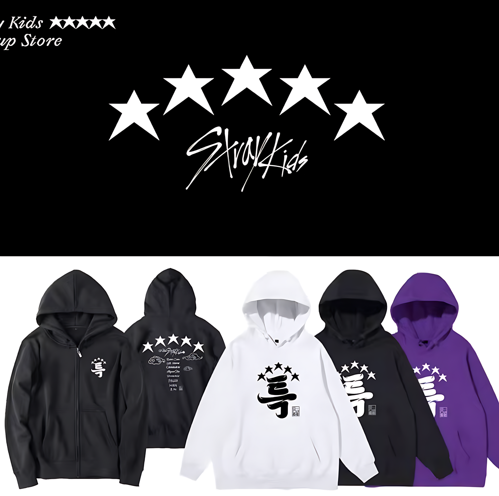 Stray Kids 5 Star Hoodie! The sweatshirt is 100% cotton with a velvet soft interior. Super comfy and skin-friendly. Match with your bias!