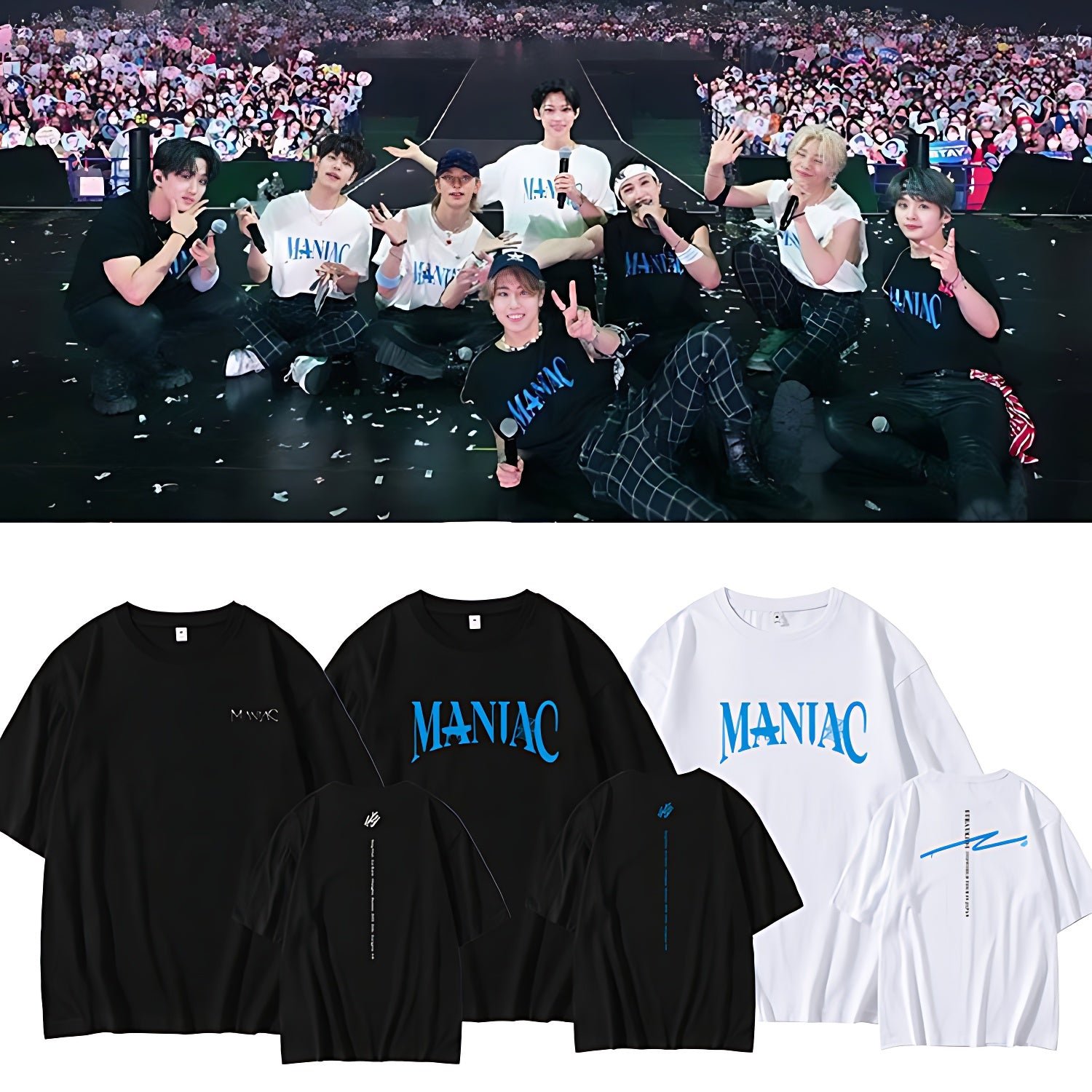 Stray Kids Japan Maniac 2nd World Tour in Seoul Concert T-Shirt Merchandise! The shirt is 100% cotton. Super comfy and skin-friendly. Match with your bias!
