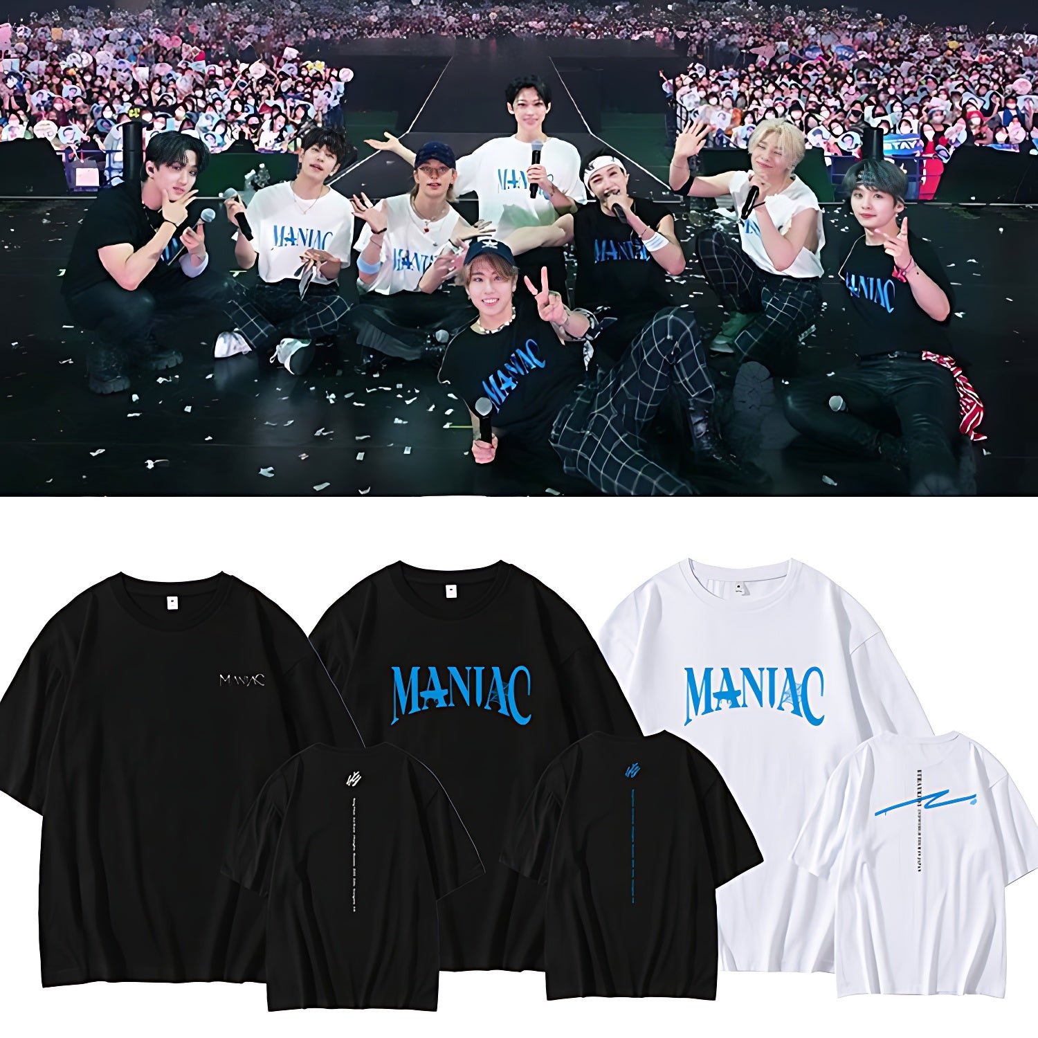 Stray Kids Japan Maniac 2nd World Tour in Seoul Concert T-Shirt Merchandise! The shirt is 100% cotton. Super comfy and skin-friendly. Match with your bias!