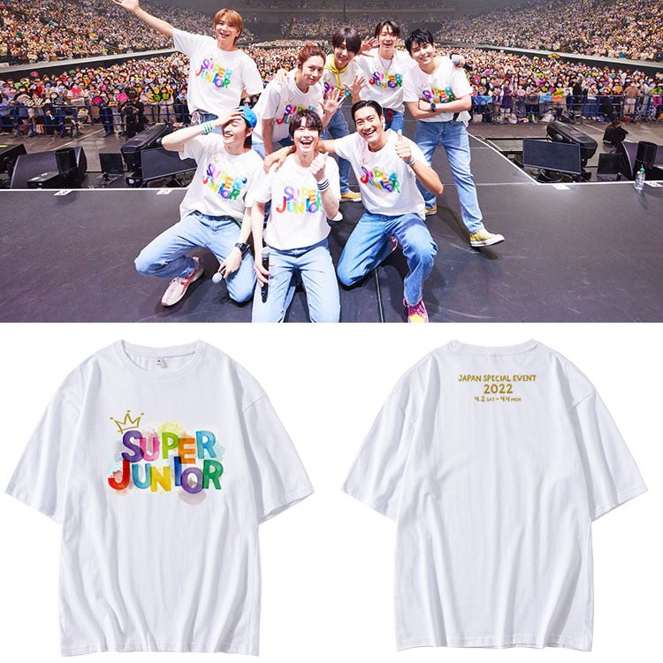 Super Junior Japan Special Event 2022 T-Shirt Merchandise! The shirt is 100% cotton. Super comfy and skin-friendly. Match with your bias!