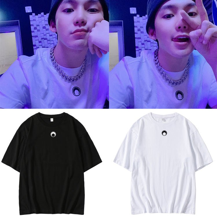 Treasure Hyunsuk Moon Crescent T-Shirt Merchandise! The shirt is 100% cotton with a velvet soft interior. Super comfy and skin-friendly. Match with your bias!