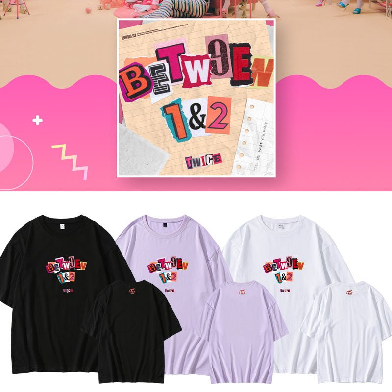 Twice Between 1&2 Album T-Shirt Merchandise! The shirt is 100% cotton. Super comfy and skin-friendly. Match with your bias!