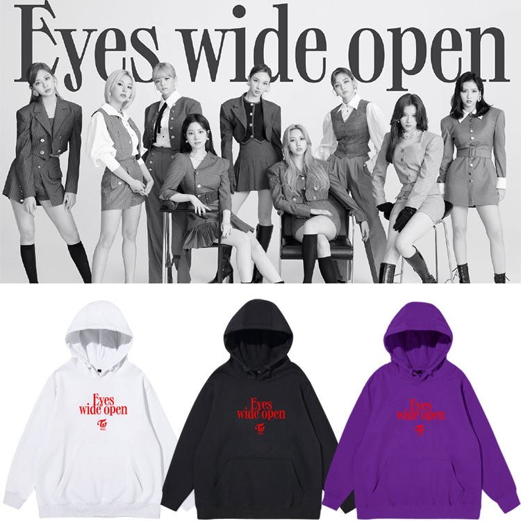 Twice Eyes Wide Open Album Hoodie Sweatshirt Merchandise! The sweatshirt is 100% cotton with a velvet soft interior. Super comfy and skin-friendly. Match with your bias!