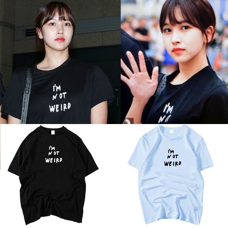 Twice Mina I’m Not Weird T-Shirt Merchandise! The shirt is 100% cotton. Super comfy and skin-friendly. Match with your bias!
